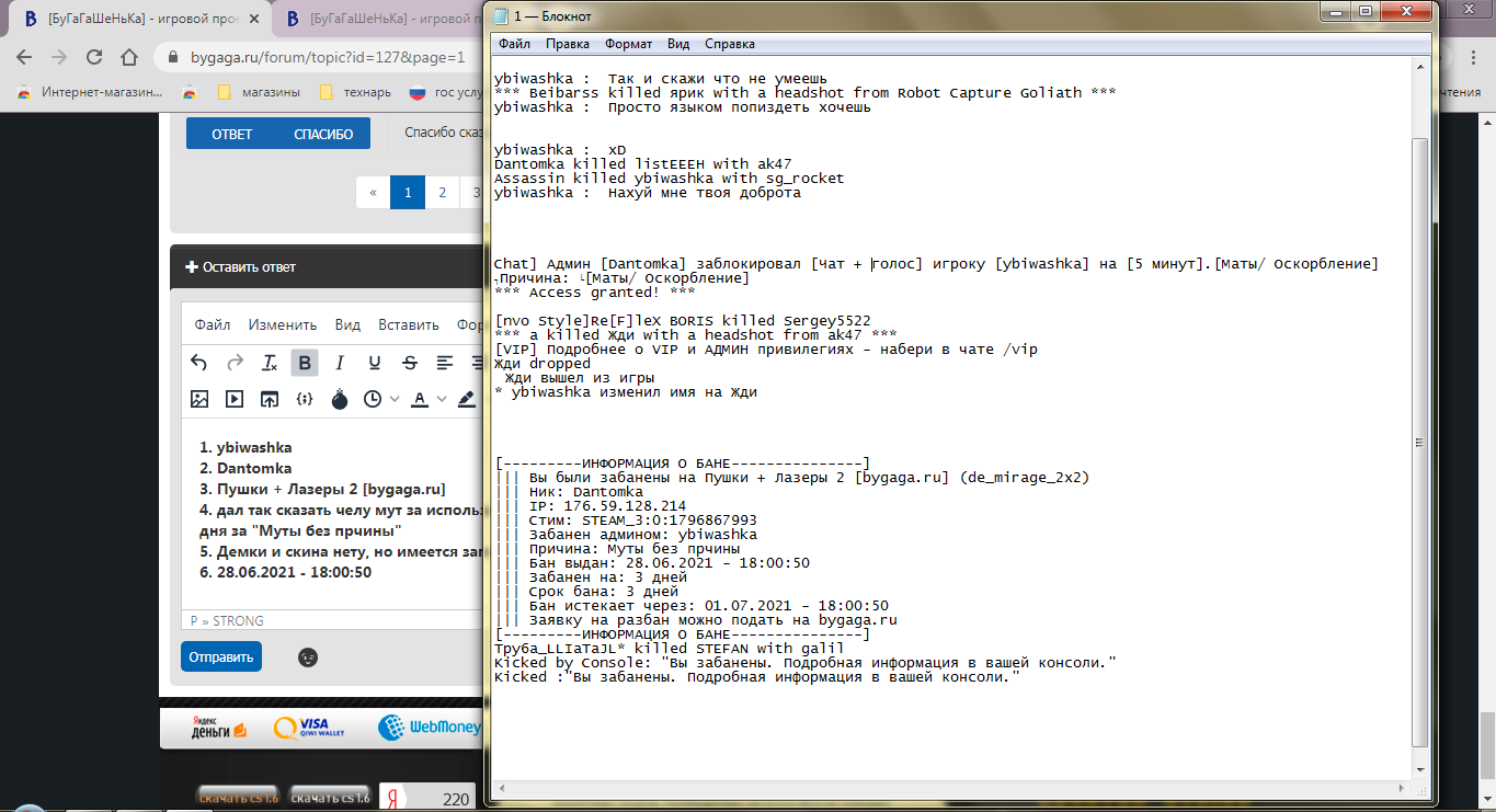 4. дал так сказать челу мут за использование матов на 5 минут, он меняет ник на "Жди" и дает бан на 3 дня за "Муты без прчины"